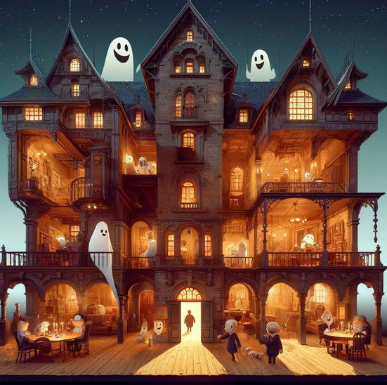 The house is old. Walls are thick. Doors are creaky. Rooms are many. Secrets are hidden. Ghosts are friendly. Laughter is frequent. The house is famous. Visitors are curious. Stories are plentiful. The house is alive. Mystery is its charm.