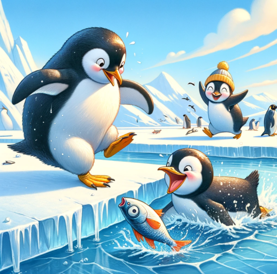 A small penguin lives in a town. It walks around the big park. The penguin feels a little sad. It wants a friend to play with. Suddenly, it sees a red ball. The ball looks very round. The penguin likes the red ball. It pushes the ball with its nose. The ball rolls on the green grass. The penguin follows the red ball. It feels very happy now. Then, a small dog sees the ball. The dog runs to the red ball fast. The penguin watches the dog play. The dog has fun with the ball. The penguin likes the happy dog. It walks near the happy dog. The dog […]